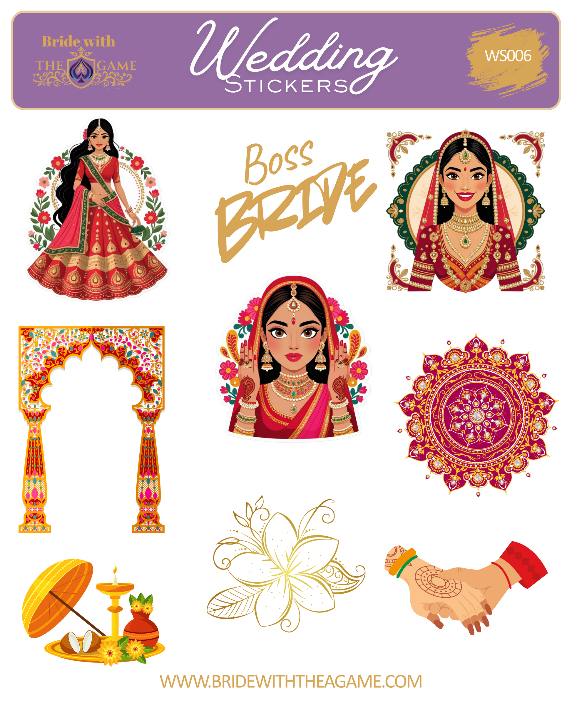 Rich in color and tradition, our Indian Bride sticker sheet celebrates cultural beauty, gold accents, and bridal confidence for your wedding planning pages.